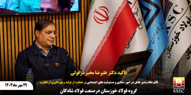 در جریان بازدید میدانی و جلسه اداری روز سه‌شنبه ۲۹ مهرماه ۱۴۰۴ از کارخانه فولادسازی شادگان، دکتر علیرضا مخبر دزفولی، قائم‌مقام مدیرعامل گروه فولاد خوزستان در امور ستادی و مسئولیت‌های اجتماعی، به همراه جمعی از معاونین و مدیران گروه، از بخش‌های مختلف کارخانه ب