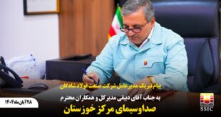 مطالعه بیشتر »پیام تبریک مدیرعامل شرکت صنعت فولاد شادگان به جناب آقای دبیقی مدیرکل و همکاران محترم صداوسیمای مرکز خوزستان