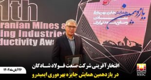 شرکت صنعت فولاد شادگان در یازدهمین همایش جایزه بهرهوری ایمیدرو که در سالن همایشهای بینالمللی هتل ارم برگزار شد، موفق به کسب تقدیرنامه پیشروان پنجستاره این جایزه شد و بار دیگر جایگاه خود را بهعنوان یکی از شرکتهای صنعتی پیشرو کشور در مسیر تعالی و بهرهوری تثبیت کرد. به گزارش …
