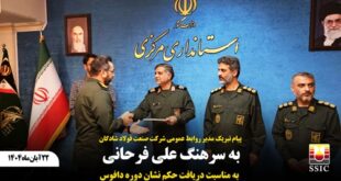 مطالعه بیشتر »پیام تبریک مدیر روابط عمومی شرکت صنعت فولاد شادگان به سرهنگ علی فرحانی به مناسبت دریافت حکم نشان دوره دافوس